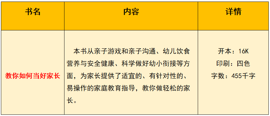 本书以《全国家庭教育指导大纲》为编写依据,主要内容包括良好家风对家庭教育的重要意义、亲子游戏和亲子沟通、幼儿饮食营养与安全健康、幼儿艺术启蒙及社会适应、和谐二孩关系的诀窍、科学做好幼小衔接等,能够帮助家长了解幼儿心理与教育规律,了解幼儿的个性和需求,为家长提供适宜、有针对性的家庭教育指导,助力家长科学育儿,有效提升家园共育水平。